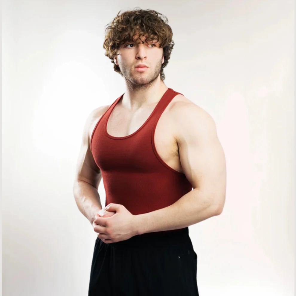 Built from a premium 340 GSM cotton blend with a touch of spandex for movement. The higher fabric weight gives a substantial hand-feel, reduces show-through and flimsy ride-up, and helps the tank keep its outline wear after wear.
